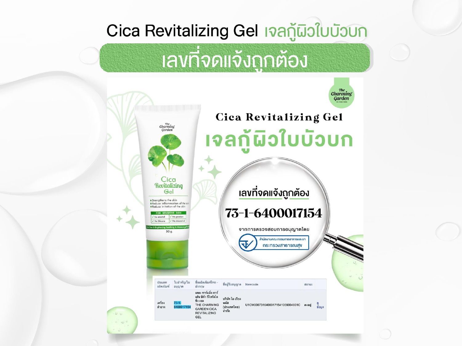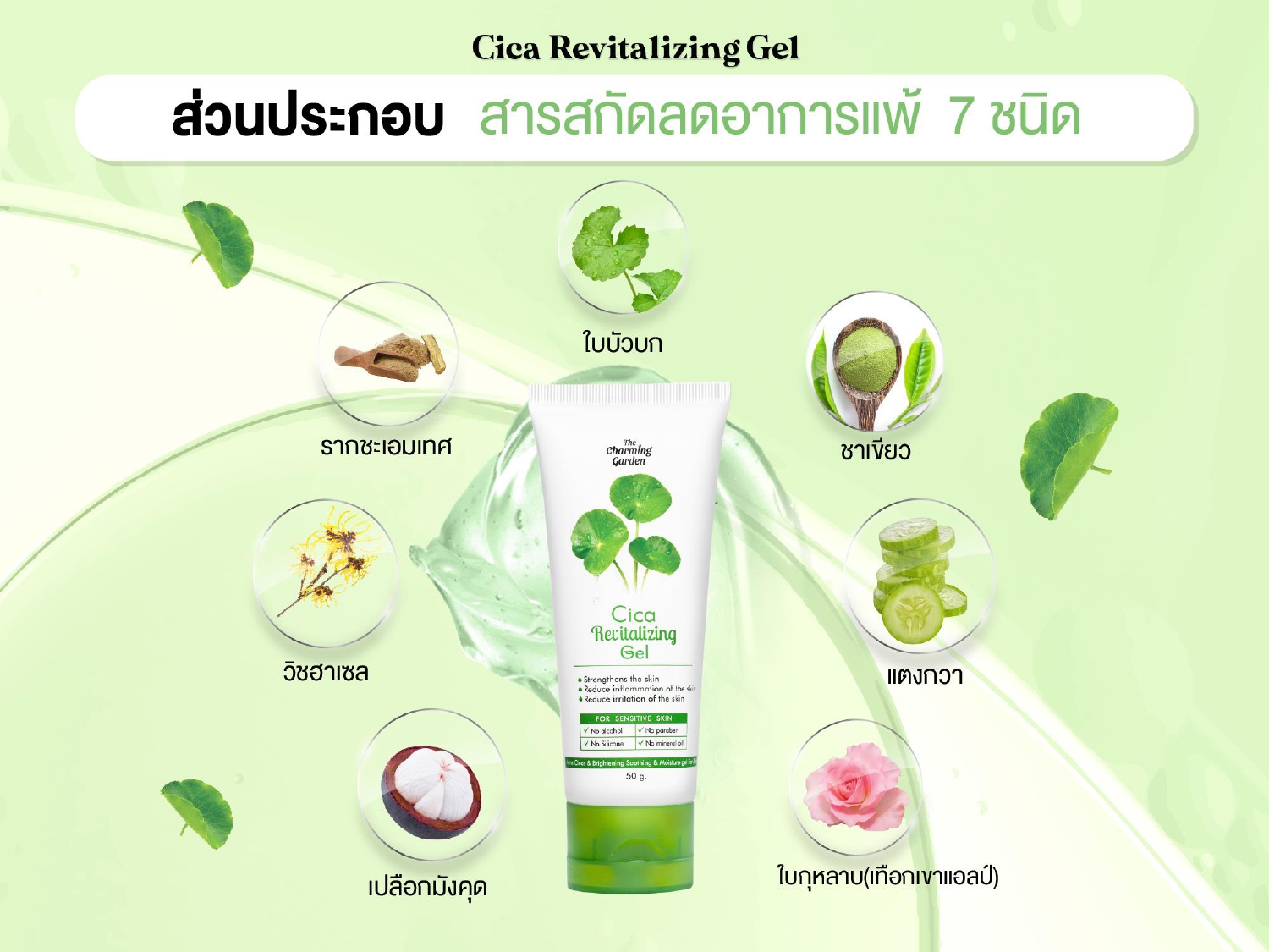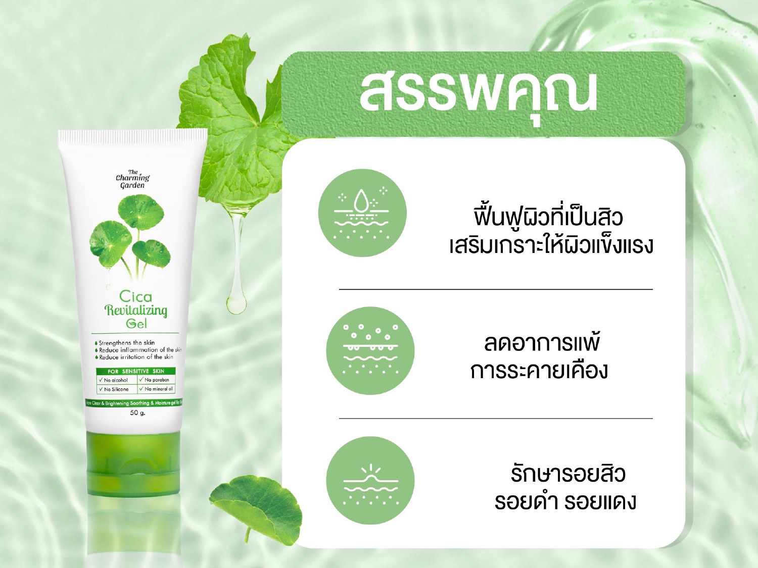 เจลบำรุงผิวหน้า เจลกู้ผิวใบบัวบก ลดสิวและปลอบประโลม ฟื้นฟูผิวแข็งแรง